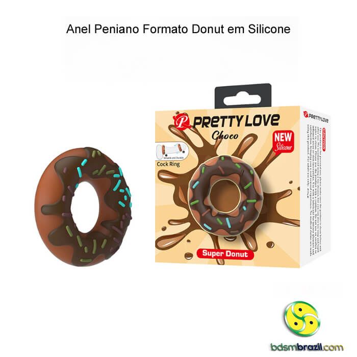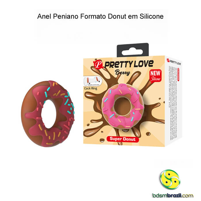 Anel peniano formato donut PRETTY LOVE em silicone macio, diâmetro 2 cm. Design divertido, confortável e seguro. Prolonga o prazer a dois. Compre com discrição!