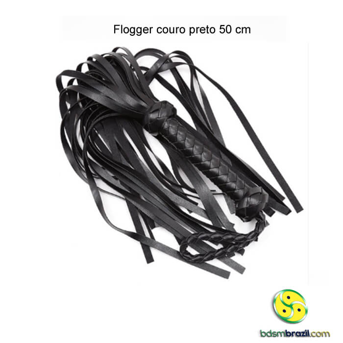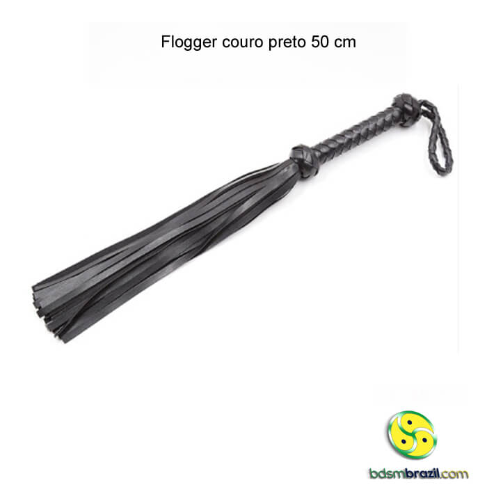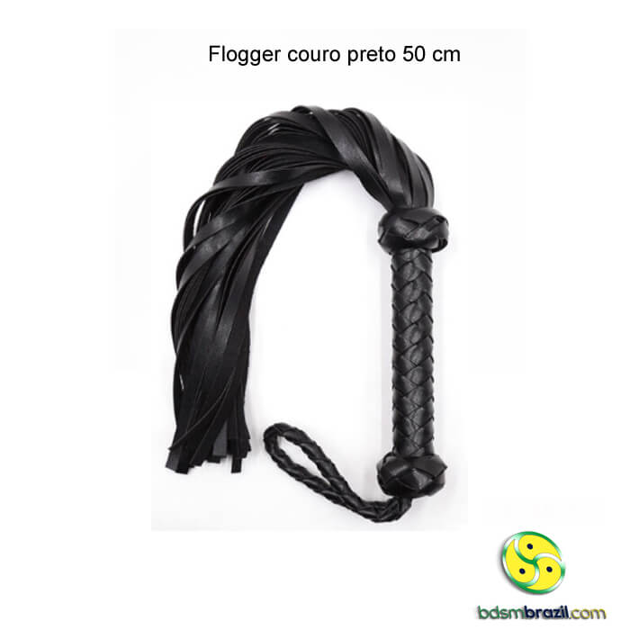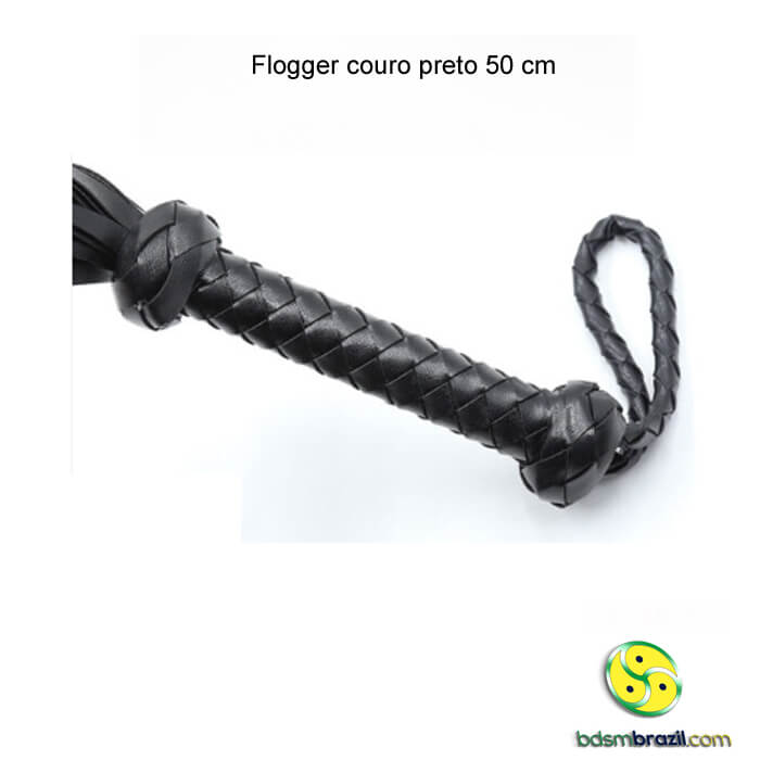 Flogger de couro preto 50 cm