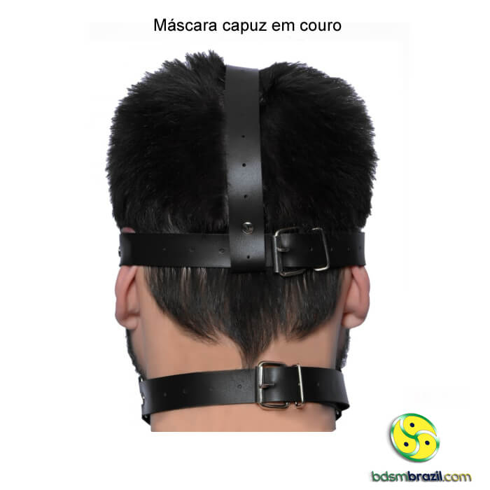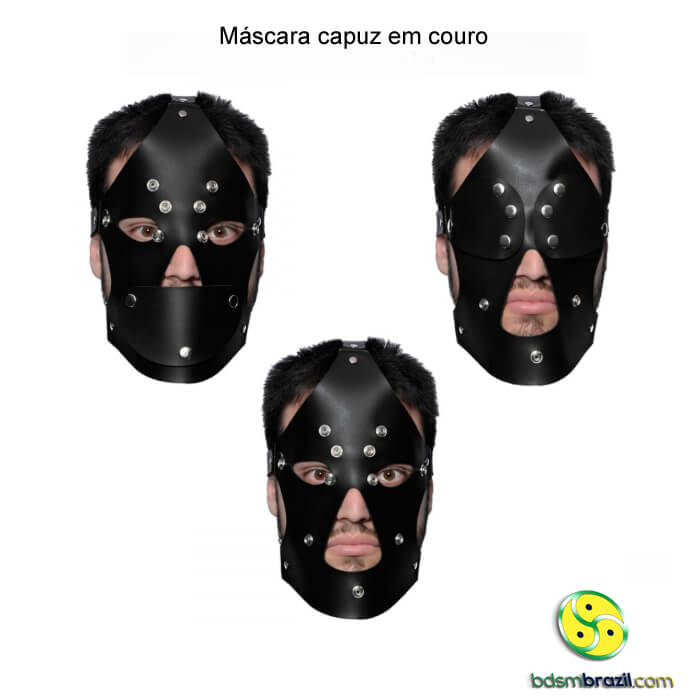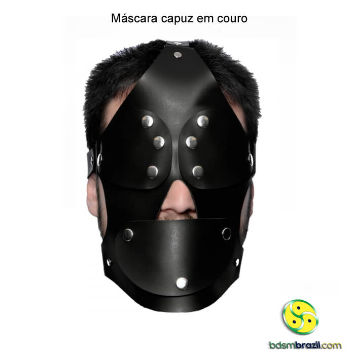 Confeccionada em couro (ou imitação de alta qualidade), esta máscara-capuz envolve completamente a cabeça, deixando apenas elegantes aberturas para os olhos (e, opcionalmente, a boca). Um visual impactante que exala autoridade e faz pulsar o universo do BDSM. -