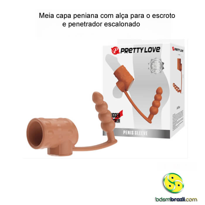 Meia capa peniana com alça para o escroto e penetrador escalonado