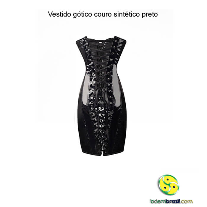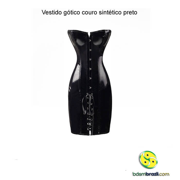 Vestido gótico couro sintético preto